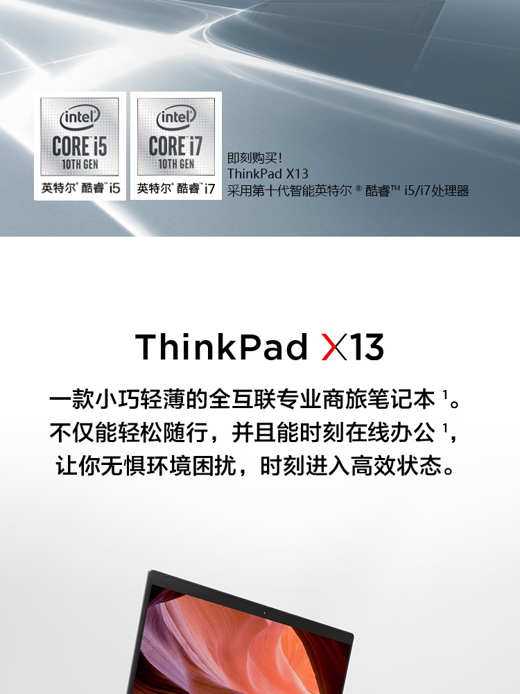 联想ThinkPad X13 酷睿版 十代英特尔酷睿i5/i7 13.3英寸商务办公轻薄笔记本电脑 十代i5 8G 512G 5SCD 4G版