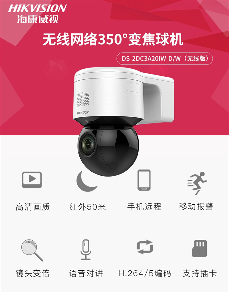 海康威视 DS-2DC3A20IW-D/W(无线版)视频监控设备 海康威视云台球机室外高清红外摄像机200球机监控摄像头支持TF卡